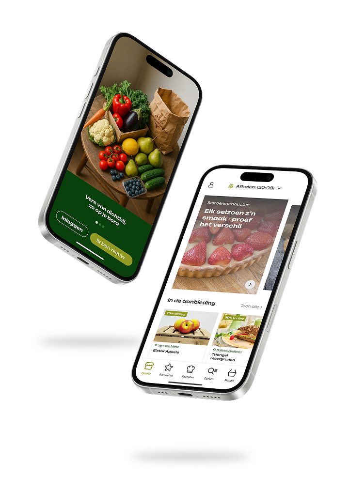 - Consumenten: de app toont altijd het actuele aanbod en voorraad van producenten, inclusief seizoensproducten.